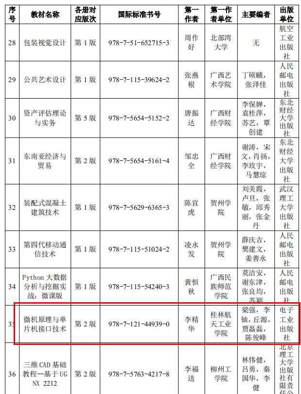 近日,自治区教育厅公布了2024年度广西普通本科高校优秀教材评选结果。best365官网电子信息与自动化学院李精华教授主编的《微机原理与单片机接口技术(第2版)》获得二等奖。