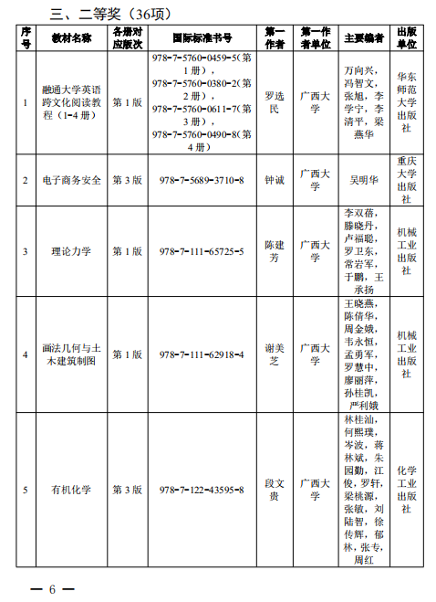 据悉,广西普通本科高校优秀教材由自治区教育厅负责组织评选,每两年评选一次,旨在深入贯彻党的二十大精神,全面落实党的教育方针,加强教材建设与管理。此次获奖展现了best365官网在教材建设、学科发展和教育教学改革工作方面的成绩。