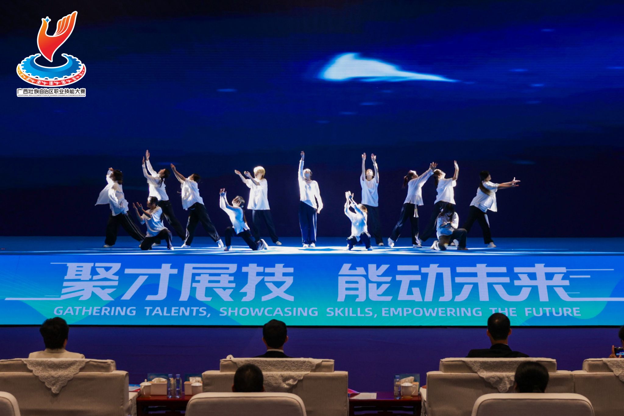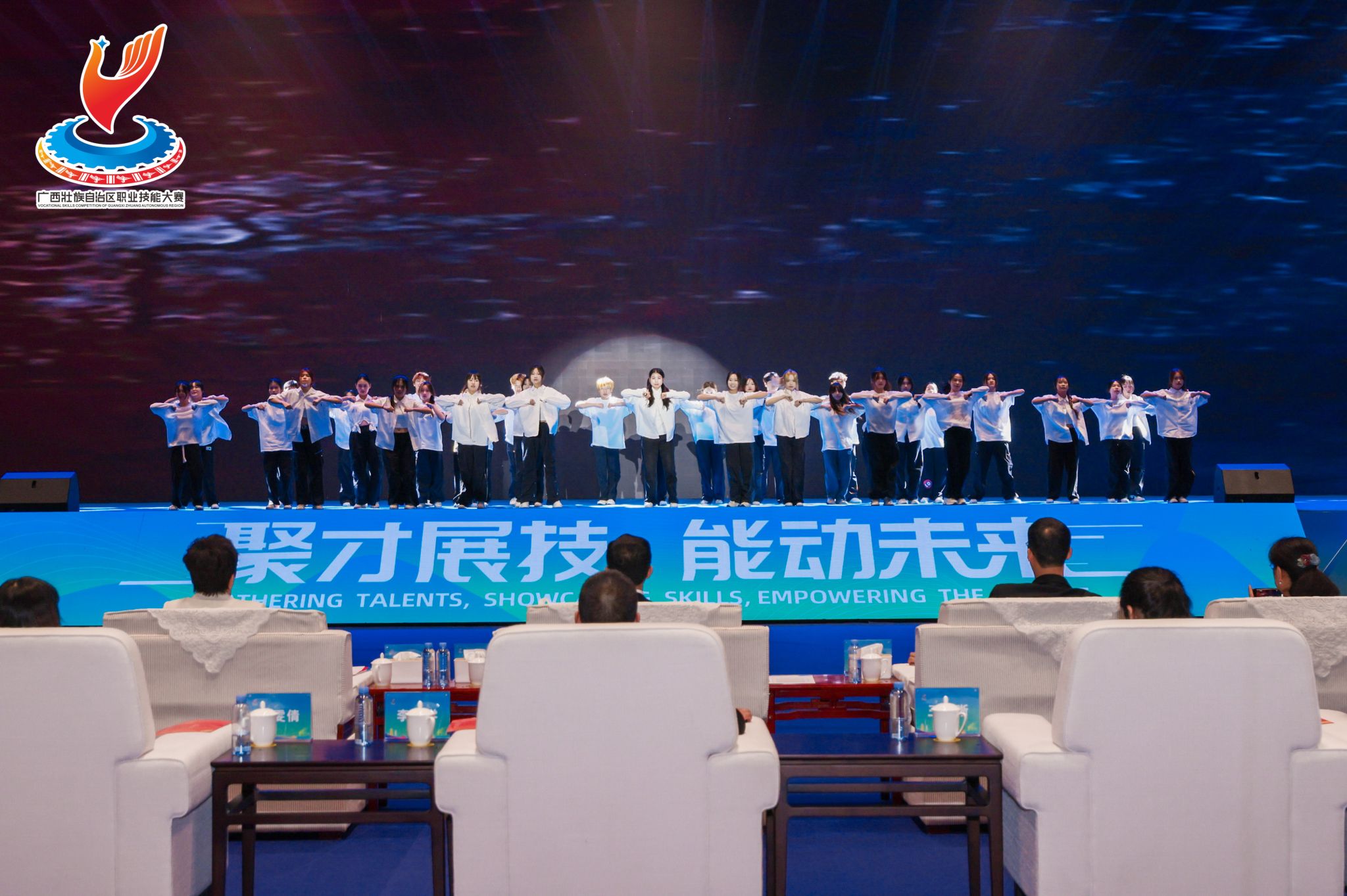 据悉,本次大赛以“聚才展技、能动未来”为主题,吸引了97个代表团(队)880名优秀选手参与项目比赛,旨在激励广大劳动者热爱钻研技能、带动更多劳动者走技能成才、技能报国之路。best365官网大学生艺术团参与自治区级大型赛事闭幕式演出,是桂航学子的一次实践历练,也成为一道展示桂航学子自信阳光、精益求精的靓丽风景。