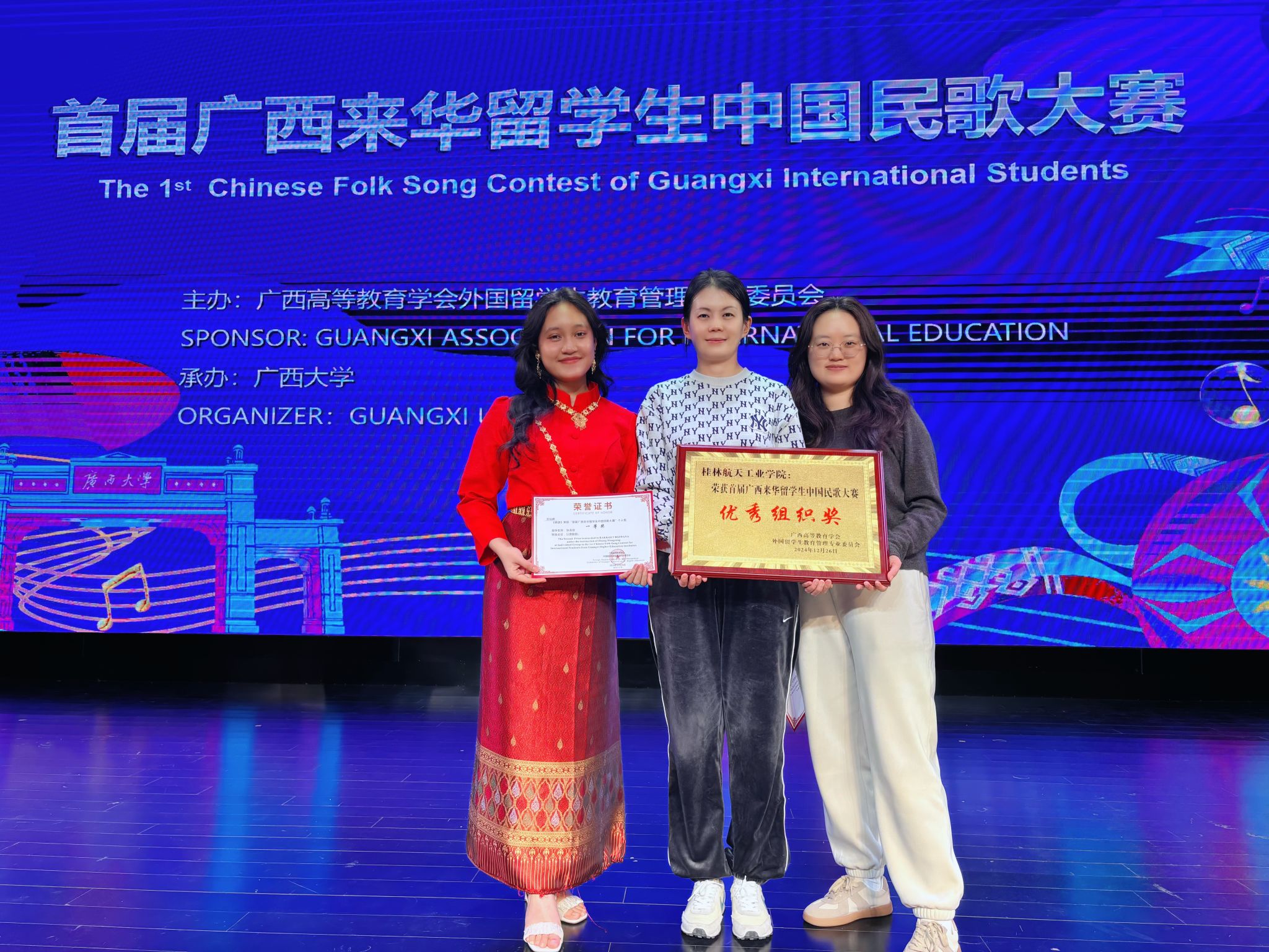 12月26日,由广西留管学会举办的首届广西来华留学生民歌大赛在广西大学举行。历经初赛筛选与决赛现场评审,best365官网泰国籍留学生王仙婷斩获一等奖,学校荣获“优秀组织奖”。