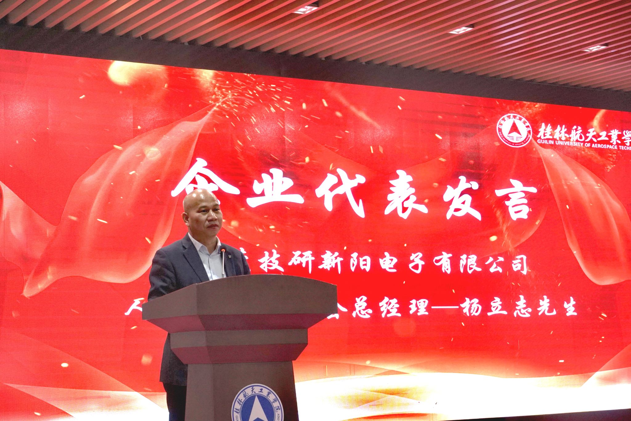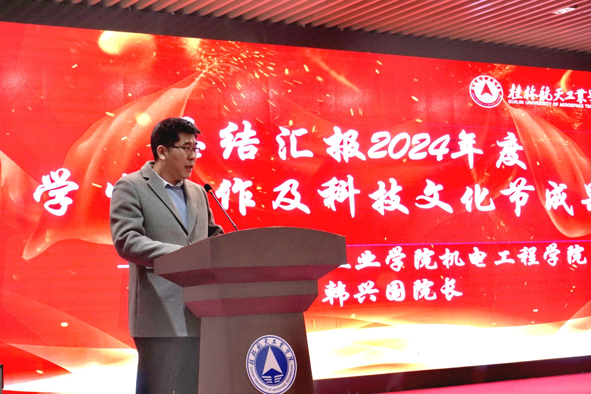 会上,学院相关负责人总结汇报了2024年度学生工作及科技文化节成果。东莞技研新阳电子有限公司人力资源委员会总经理杨立志代表合作企业发言,高度赞赏桂航学子的创新精神、实践能力、航天品质,并表态将长期余桂航开展产教融合订单培养及共同举办科技文化竞赛。邵怡峰作为深圳思榕科技研发骨干代表校友发言,表达对母校培育的感恩,表态要通过自身努力擦亮桂航品牌,师生代表发言,分享了组织和参与科技文化竞赛、订单班活动的经验体会。