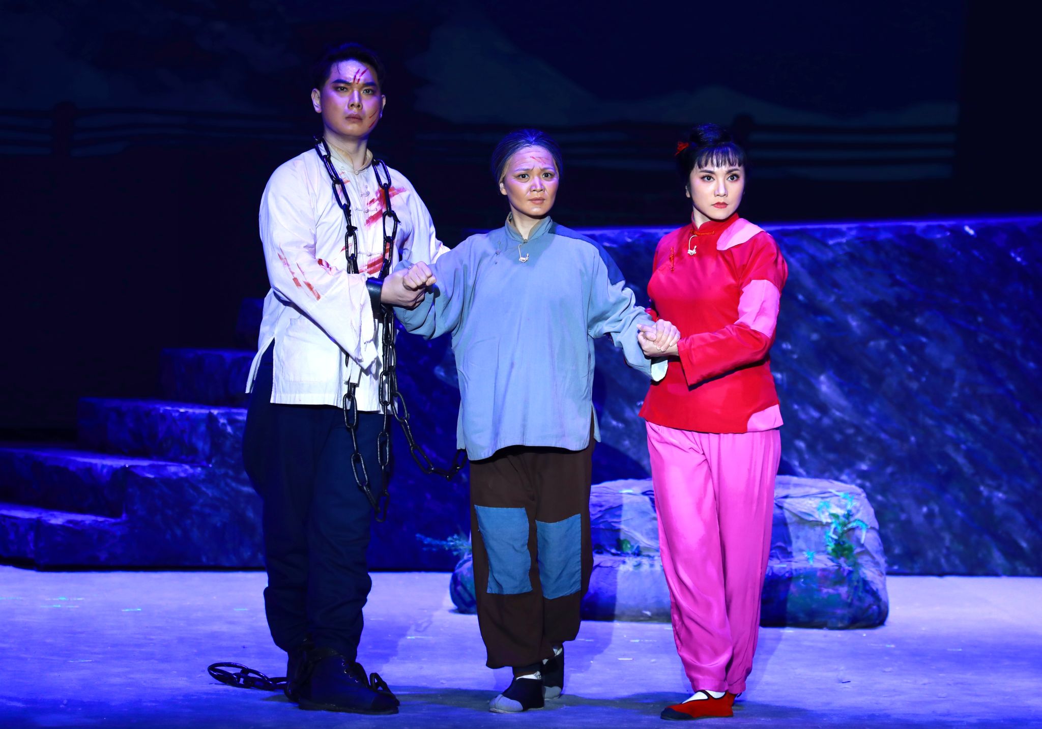 报告厅座无虚席,师生们满怀期待。大幕拉开,熟悉的旋律响起,演员们以精湛的技艺、饱满的热情,将《红灯记》中李玉和、李奶奶、铁梅等英雄人物刻画得栩栩如生。跌宕起伏的剧情、激昂有力的唱腔,把观众带回到那个战火纷飞的革命年代,让大家深刻感受到中国共产党人英勇无畏、前赴后继的崇高精神。作为革命现代戏的巅峰之作,《红灯记》以抗日战争为背景,剧中经典唱段《都有一颗红亮的心》《痛说革命家史》等,唱出共产党人的坚定信仰与家国大义。铁梅高举红灯的瞬间,不仅是舞台上的高光时刻,更是几代人心中“革命火种代代传”的精神象征!