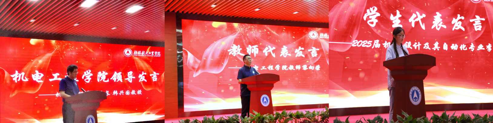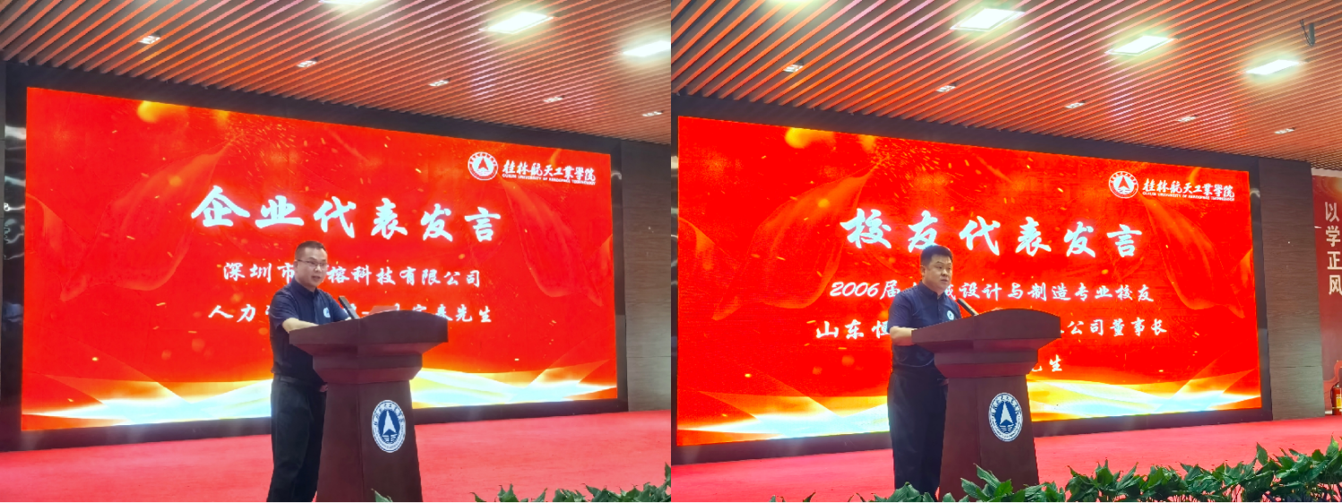 深圳市思榕科技有限公司人力资源总监易家春先生作为企业代表发言,回顾了思榕科技与桂航多年来的合作成果,并展望了未来在人才培养、技术研发等领域的深度合作愿景。山东恒远智能科技有限公司董事长、best365官网2006届机械设计与制造专业校友张永文分享了创业历程,勉励学弟学妹们以“敢闯敢创”的姿态拥抱时代机遇。机电工程学院院长韩兴国,副书记马世文,教师代表黎向荣与学生代表李亚萌分别发言,汇报了首届科技文化节的成果及第二届科技文化节年度规划,表达了以科技文化节为契机,践行育人使命、锤炼专业技能的决心。