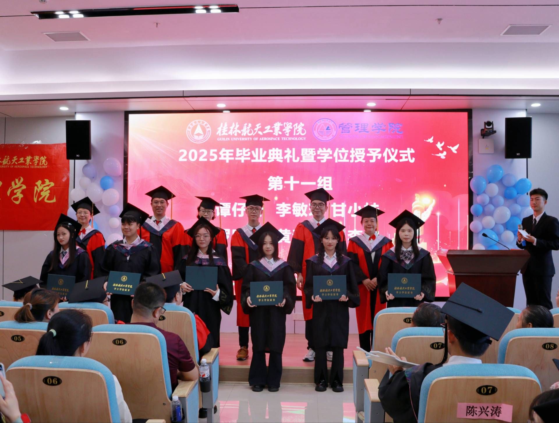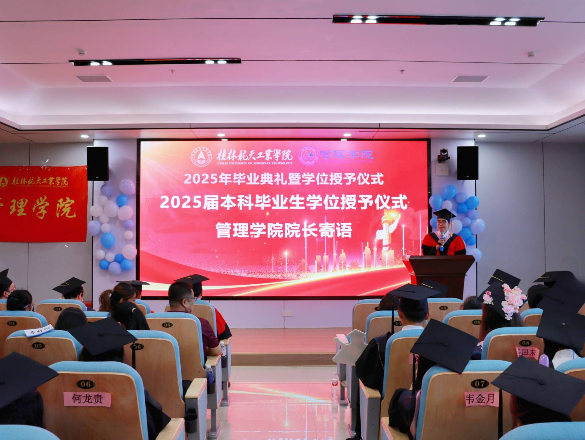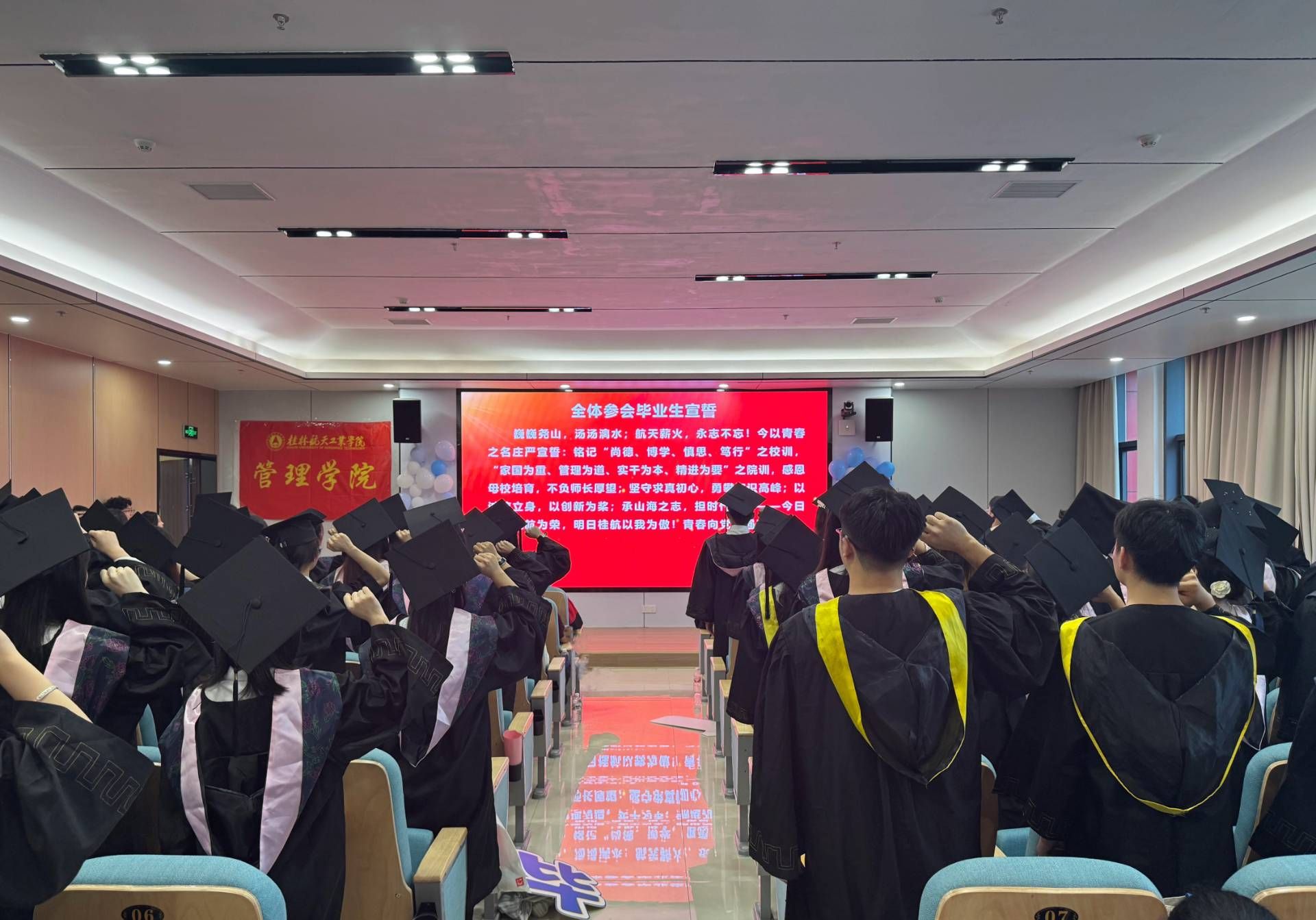 典礼现场,毕业生们以铿锵誓言回应母校期许,彰显了新时代青年的使命担当,定格青春的美好瞬间与桂航岁月的珍贵温情。