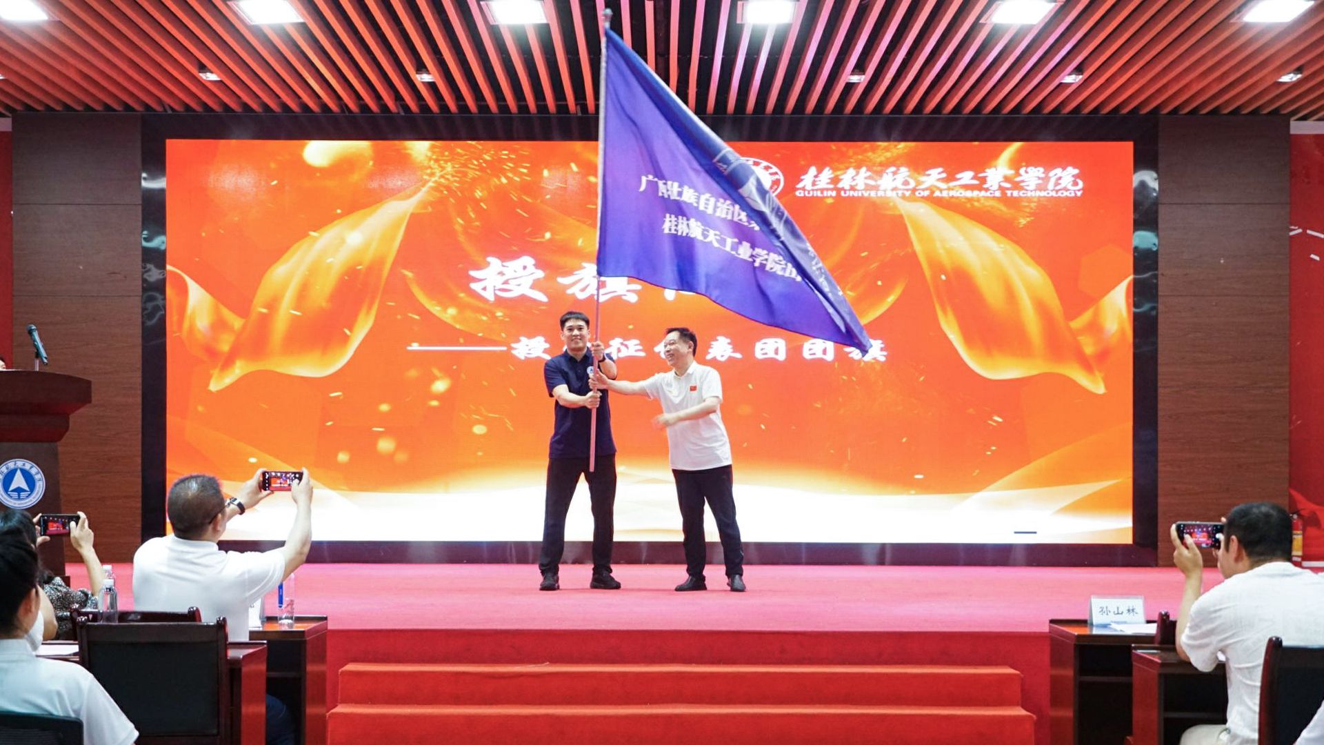 此次仪式既是壮行更是誓师,号召全体成员以航天精神为炬,在赛场上绽放桂航光芒。仪式结束后,参会人员集体合影,并在团旗上签名留念,定格这一振奋人心的时刻。