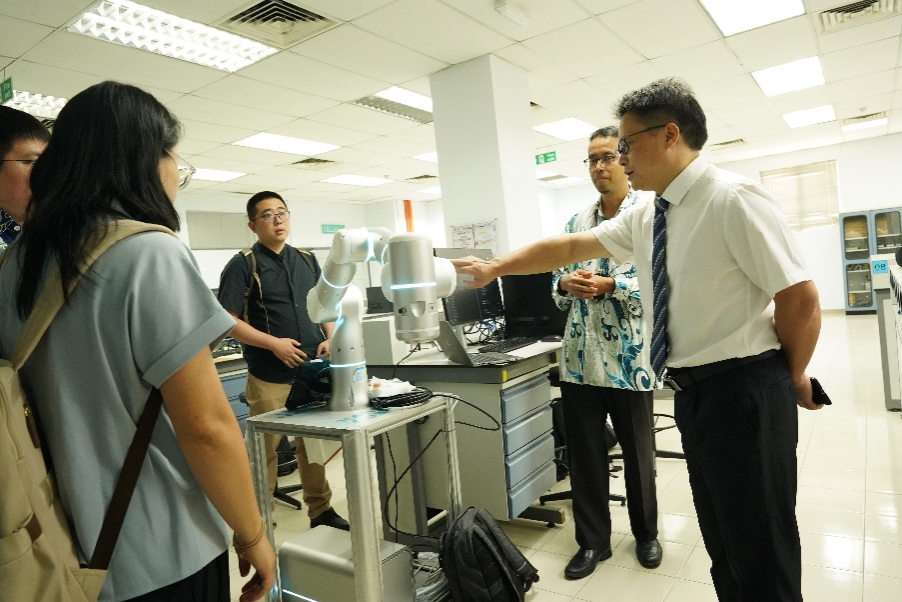 会议期间,学习调研组先后访问马来西亚理工大学(UTM)和马来西亚理科大学(USM)并进行深入调研,实地参观了马来西亚理科大学机器人实验室,双方在以下三个方面达成初步合作共识:一是在人才培养方面,推进学生联合培养与交流,包括短期访学、长期联合培养及夏令营项目;二是在科研合作方面,共同申报科研项目,开展人工智能前沿研究,实现成果共享与责任共担,并加强在论文撰写与学术研究方面的协作;三是在师资培训方面,促进教师交流与培训,包括博士、博士后等高层次人才的互访与合作。这些共识进一步深化了学校与马来西亚高校的交流与合作,为中国—东盟人工智能教育及科研合作拓展了合作空间。