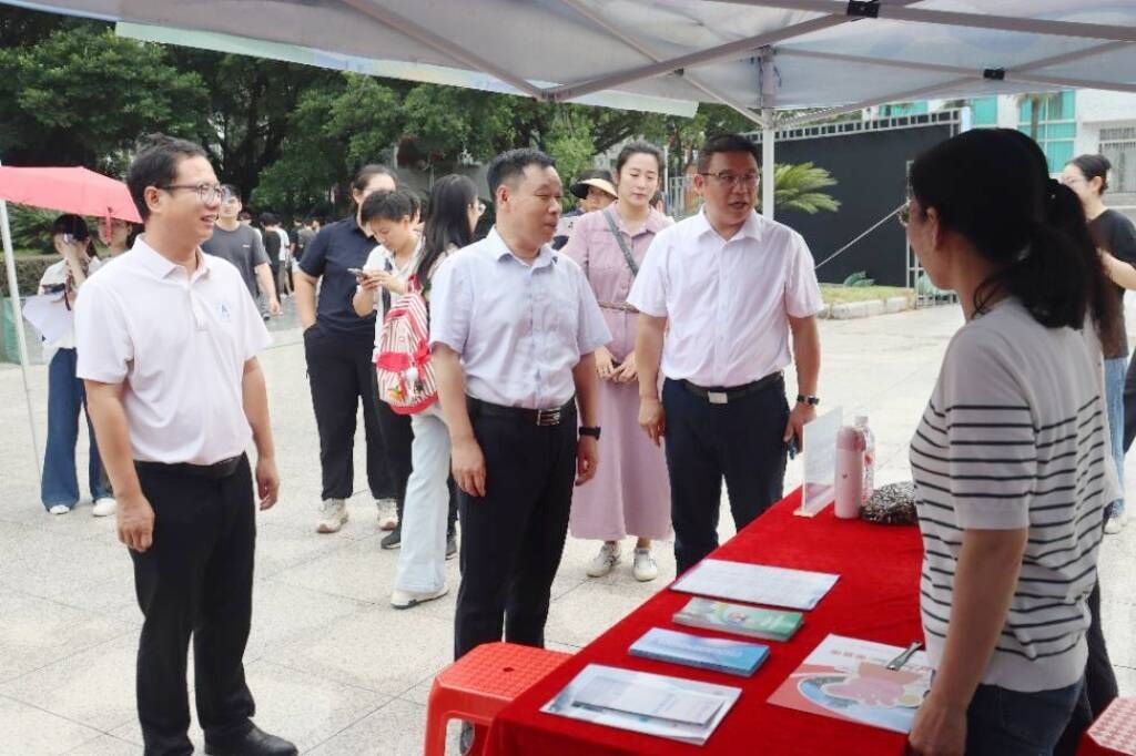 9月30日上午,best365手机版官方网站联合桂林市七星区人民政府在北校区青春广场举办“职引未来”2025年桂林片区企业校园招聘会。学校党委副书记孙山林、学工部(处)负责人、各学院学生工作负责人和2026届毕业班辅导员来到活动现场,与企业交流,指导学生应聘。
