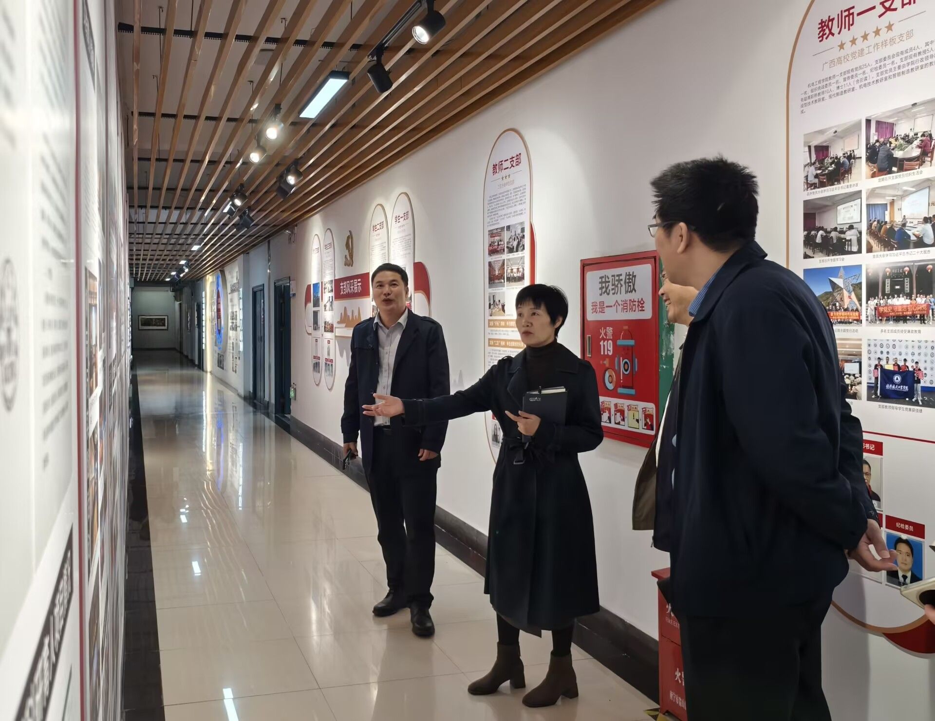 在调研期间,吴江萍一行参观了学院党建工作长廊,对学院党建工作予以充分肯定,同时针对学院创新工作方式方法、将党建优势转化为发展优势提出了具体要求。